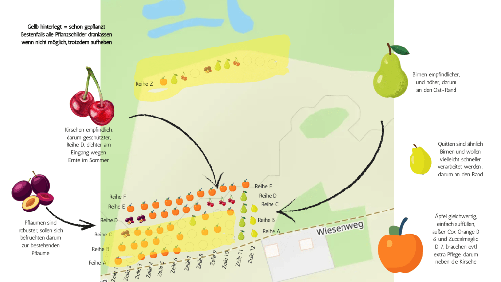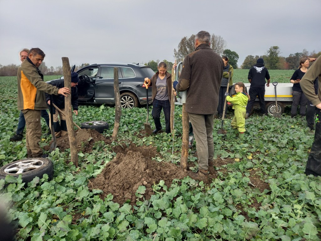 Schon am nächsten Samstag (8.11.) geht’s weiter. Die jungen Obstbäume werden eingepflanzt, angebunden und umzäunt.