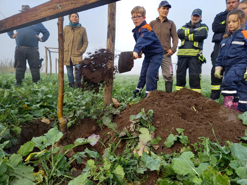 Wir hatten ehrlich Respekt vor der selbst gesteckten Aufgabe. Schaffen wir es, noch in diesem Herbst 50 Bäume zu pflanzen? Wie viele Leute würden schließlich am Sonnabend morgen (19.10.2024 um 9 Uhr) auf dem Acker stehen und eine Spaten in die Hand nehmen?